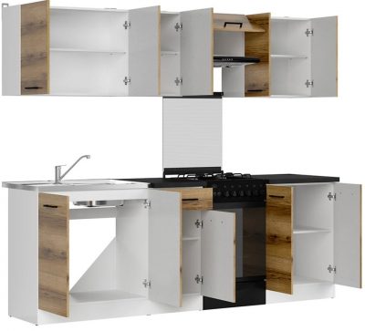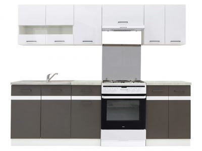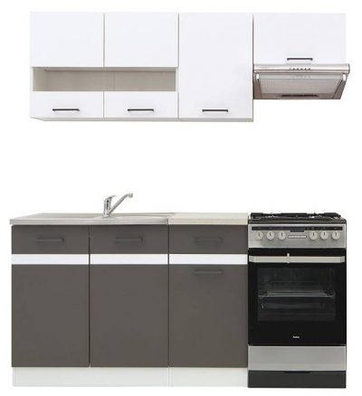 Junona Line Set 170 idealan je za korištenje sa samostojećim štednjakom od 50 cm. Ukupna dužina kompleta je 170 cm. Sve jedinice uključujući ormarić za sudoper i zidni ormarić sa staklenim prednjim dijelom mogu se postaviti zasebno i ne nužno u liniji kao što je prikazano na fotografiji.