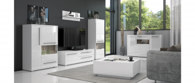Svi artikli linije dnevnih boravka RADDA PIANO, premazani su UV lakom, koji je od ostalih lakova čak 4-puta otporniji na oštećenja i ogrebotine. UV lak omogućava namještaju visoki sjaj, koji u vaš dom donosi više svjetlosti, jer se ista odbija od namještaja te tako stvara svjetliji prostor. Topla bež boja u visokom sjaju u vaš dom donosi više elegance i moderan stil.
